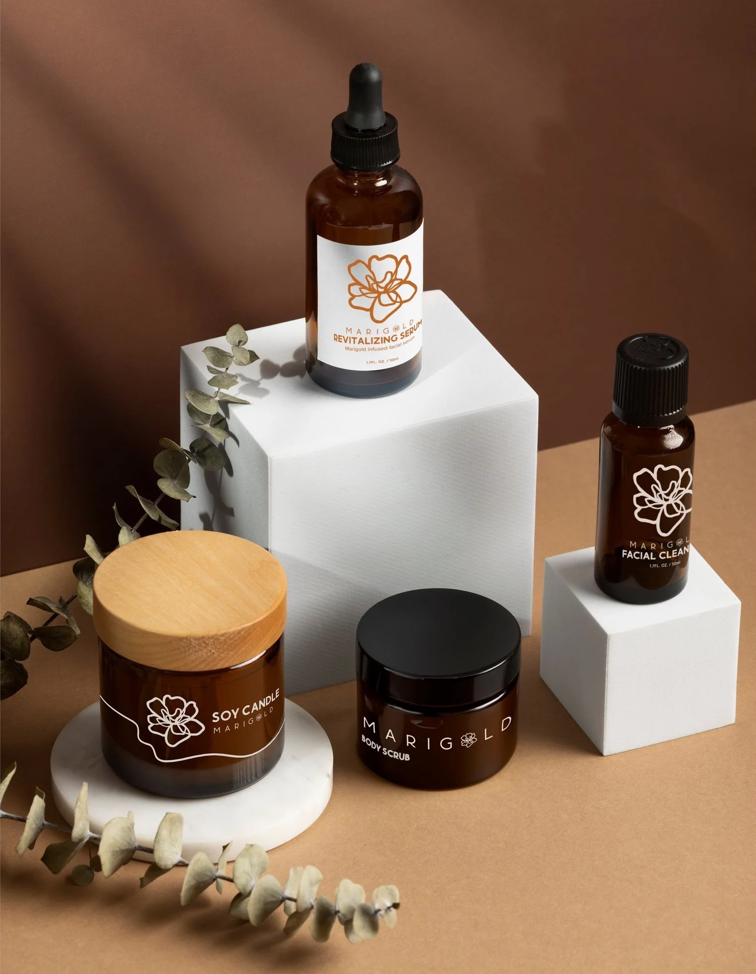 Marigold is a conceptual skincare brand. These products are all-natural and infused with Marigold flowers, with scents so fresh it feels like you’re in a field. Marigold products contain no added dyes or unnecessary ingredients: stripped down to its purest form. The branding is made to reflect this organic feel, with loose drawn flowers and curves on the packaging. Even the bottles are made from amber glass which is eco-friendly and sustainable. Marigold is used to help hydrate and make your skin glow and on top of that, it just smells good.